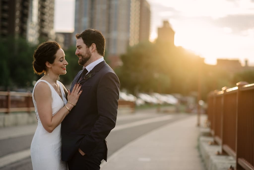 Additional Locations: Guthrie Theater for Couple and Bridal Portraits (5 Minutes from venue) – Stone Arch Bridge During Sunset time