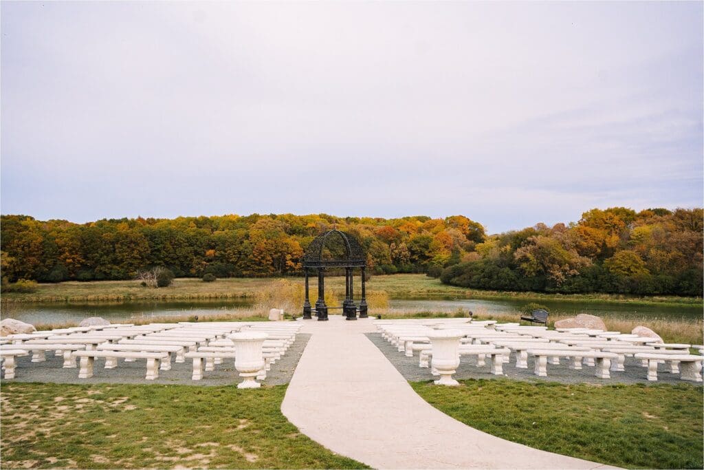 The Estate offers a variety of ceremony locations, starting by their most popular: the Garden Gazebo, the Lakeside Chapel, and the Grand Staircase.