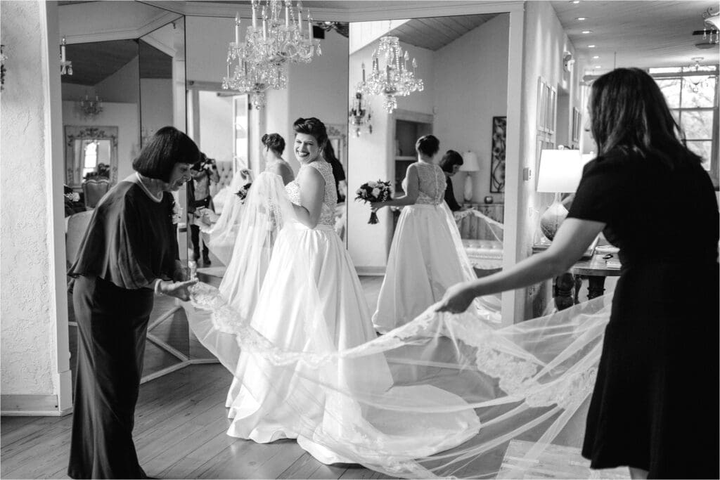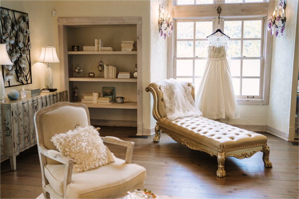 Some of our favorite features include the beautiful gardens and rolling hills that make for a stunning backdrop for wedding photos, the ample and elegant getting ready rooms for the wedding party and guests, and the surrounding natural filled areas.