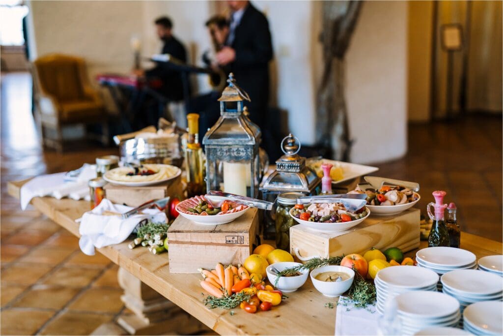 The Edward Anne Estate has an in-house catering team that can create a custom menu for your wedding, as well as a full-service bar.