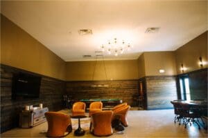 The second suite has a pool table and is also designed for couples who prefer a little more fun and relaxation before the ceremony. This additional suite is a great way to have your wedding party get ready together in different areas of the venue.