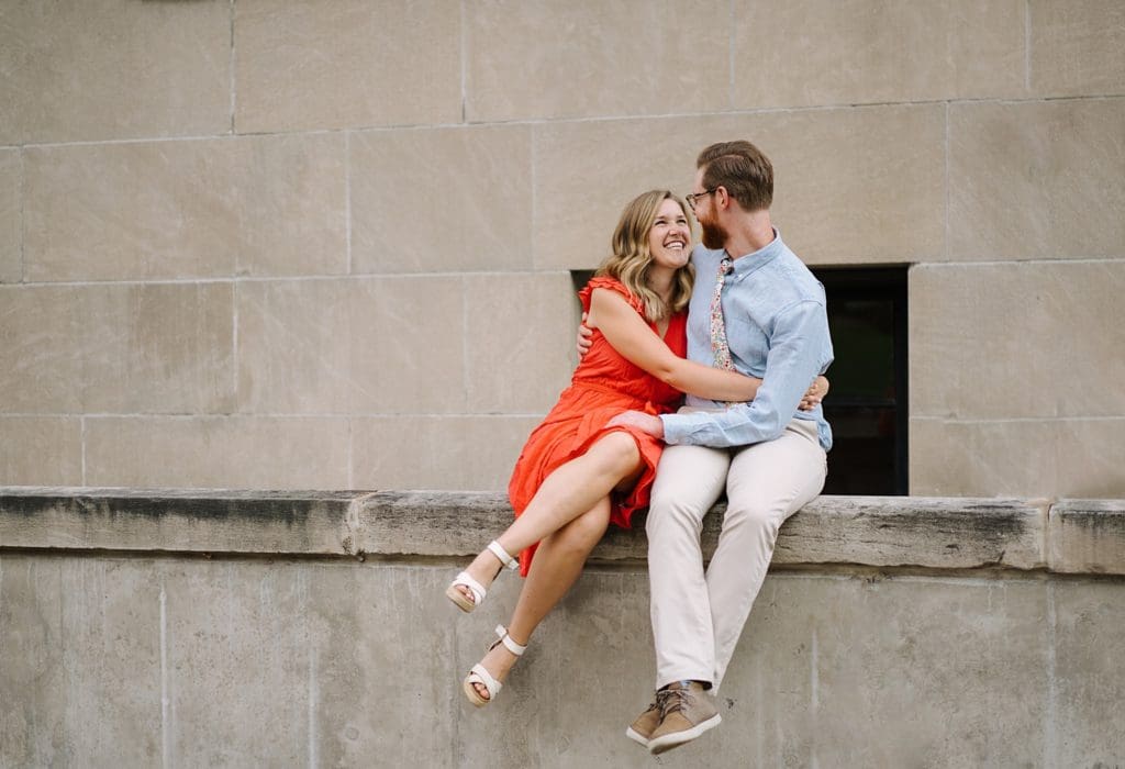 With Erin and Nick, we went Downtown St Paul for their engagement photos , started at the Union Depot, and then walked around Cherokee Park on the east side of the Mississipi, which is very special to them ! We ended our session at the High Bridge overlook