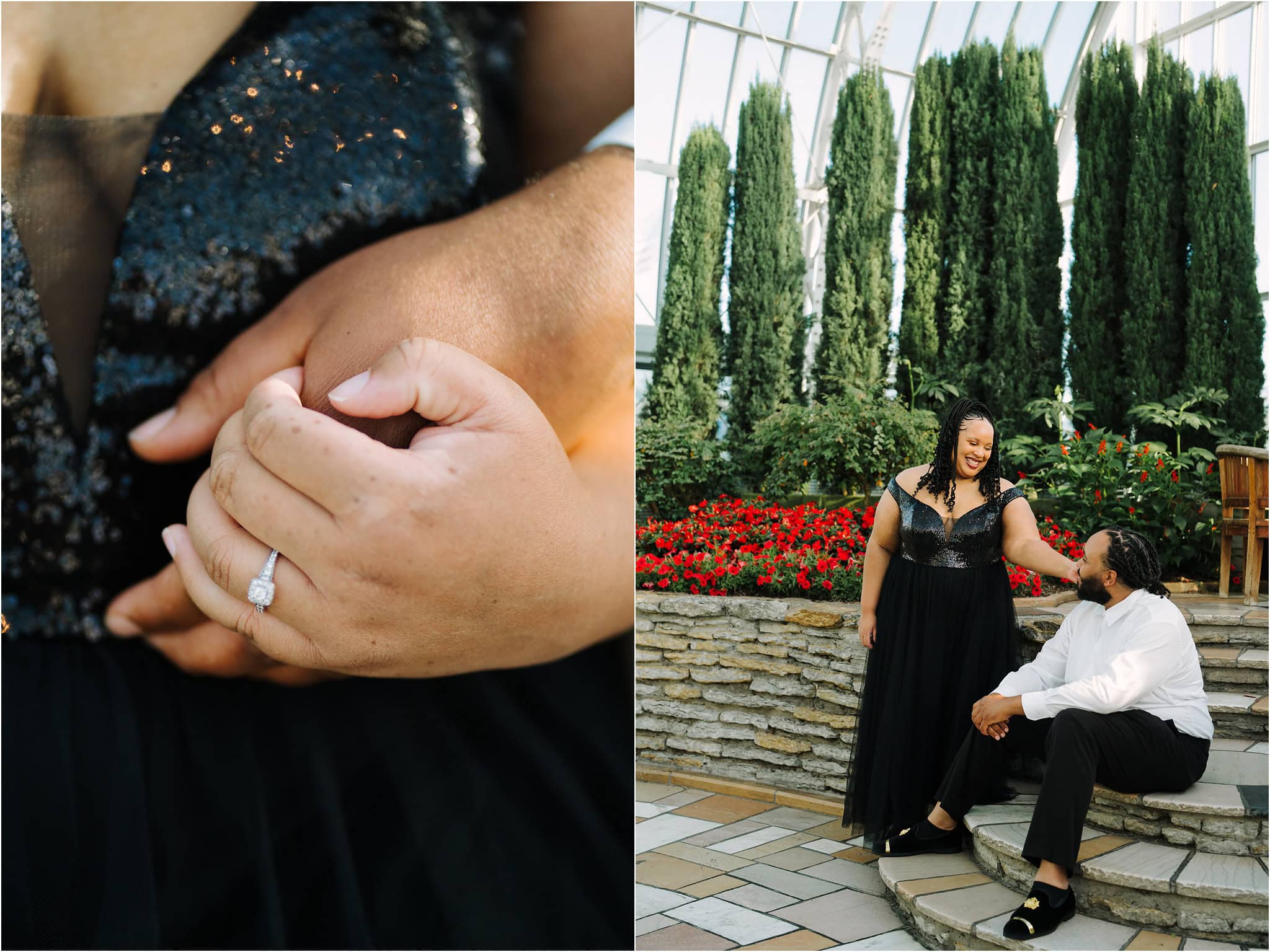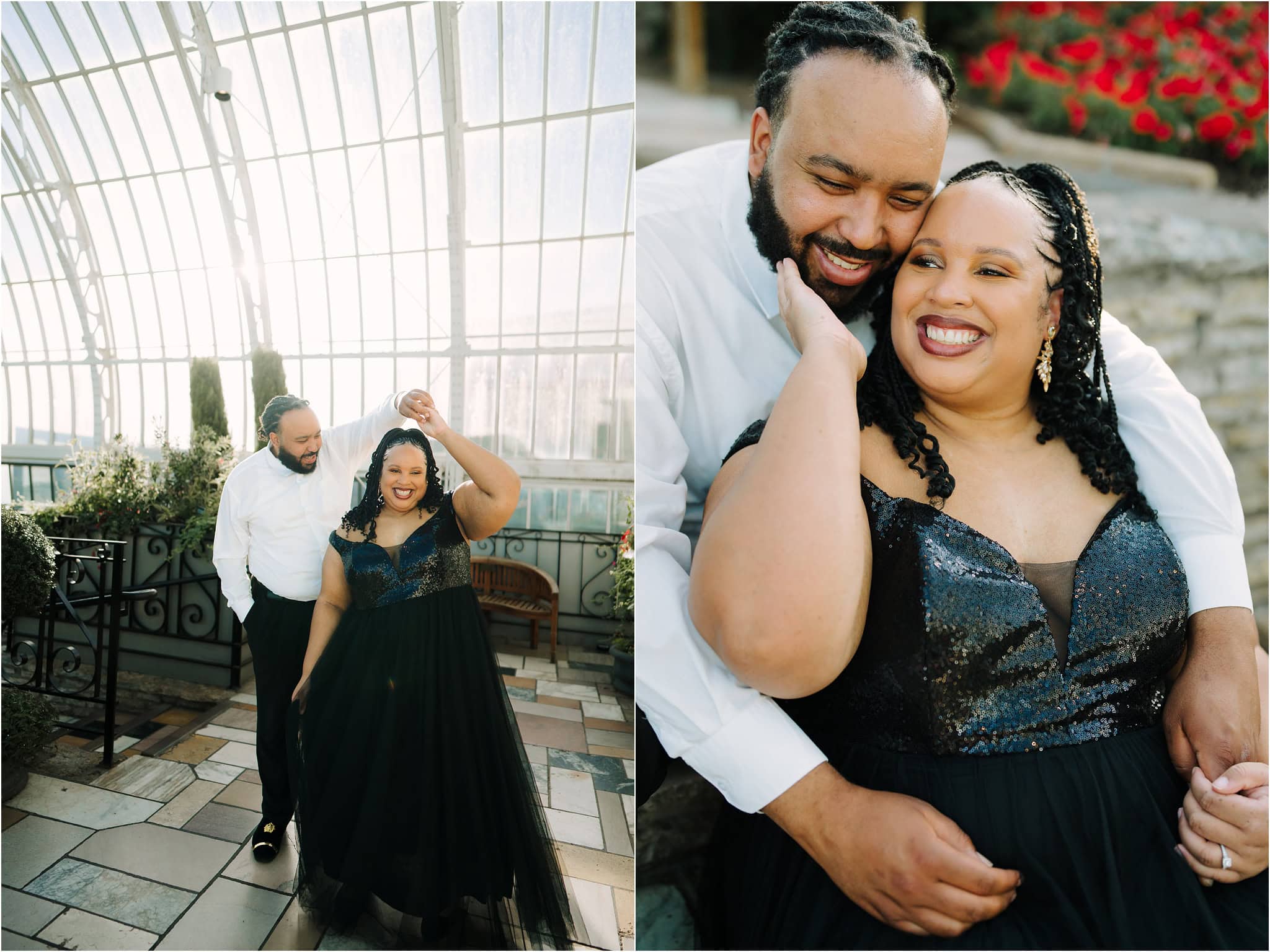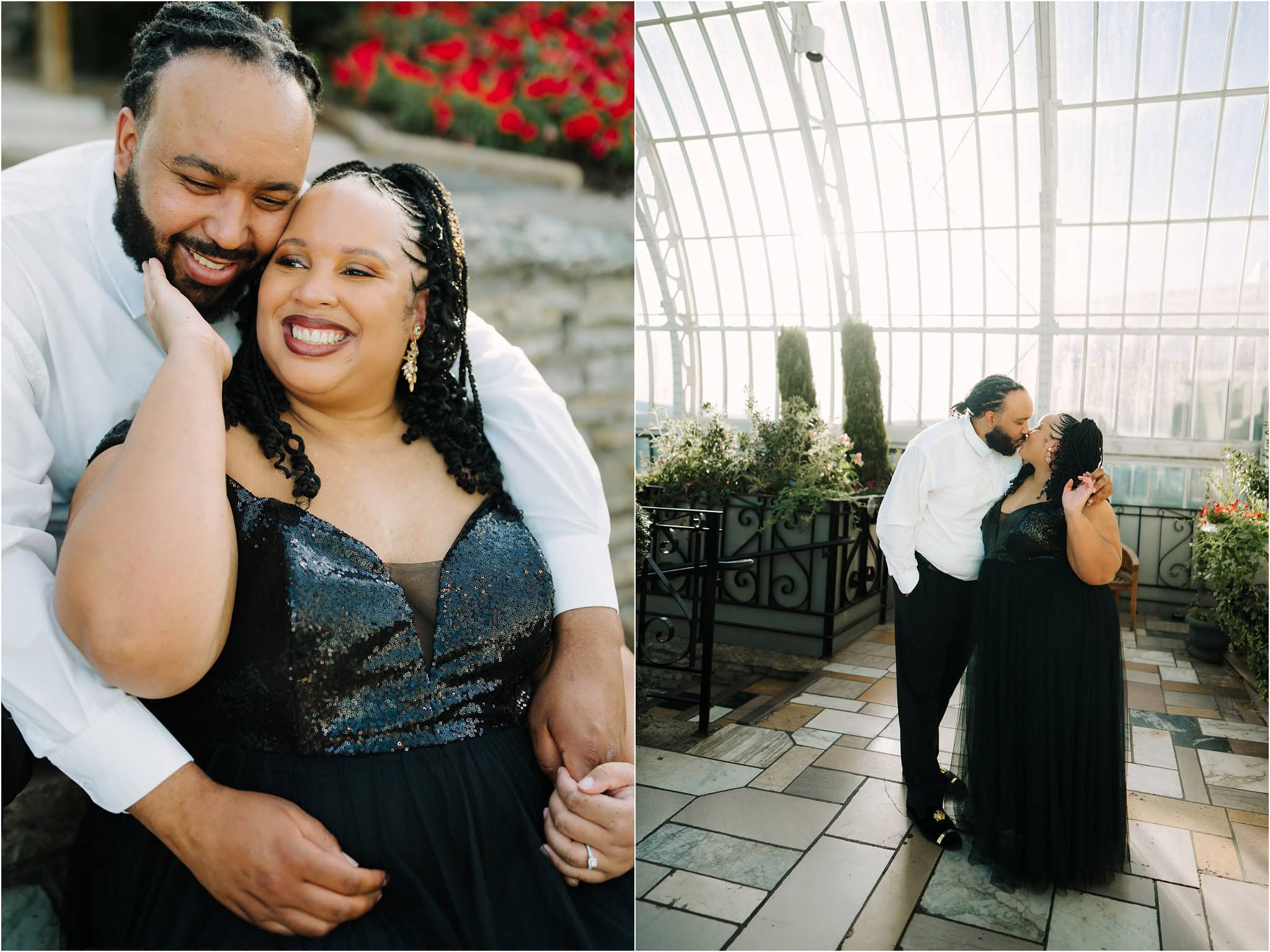 Daesha and Leo’s engagement session at the Como Conservatory was like stepping into a lush, tropical paradise in the middle of Minnesota !!