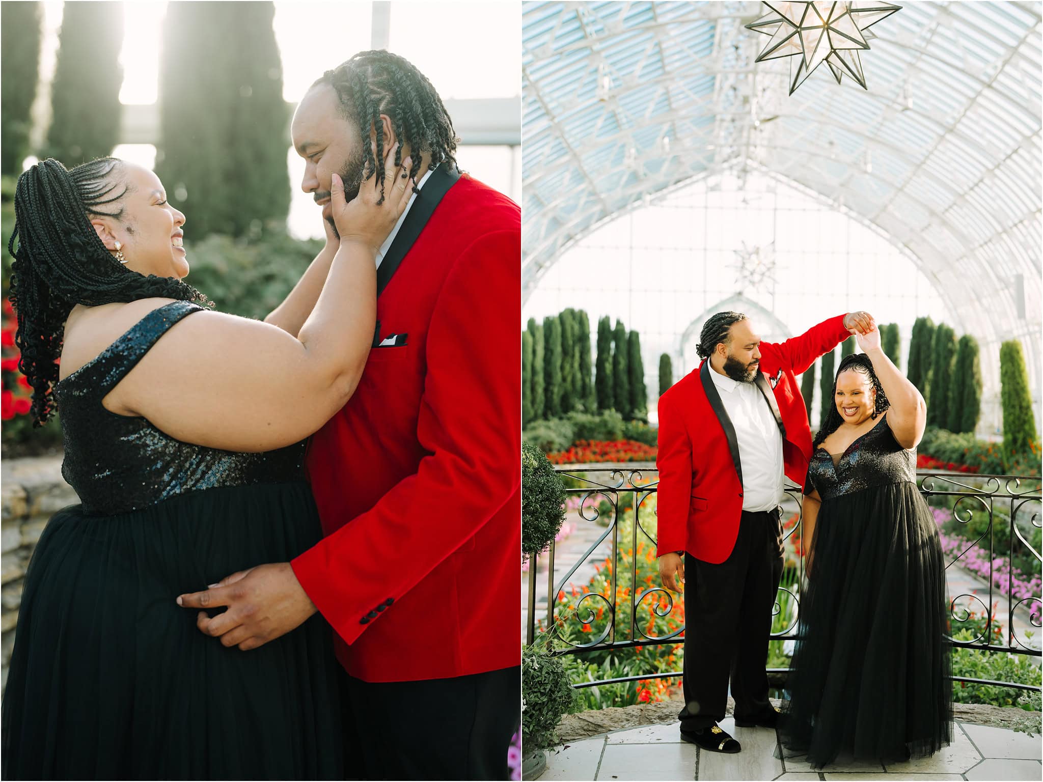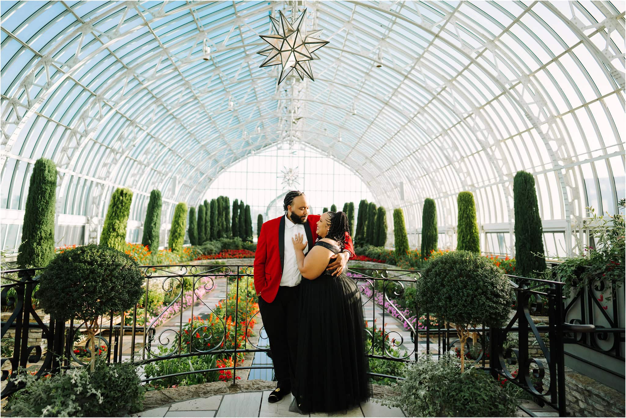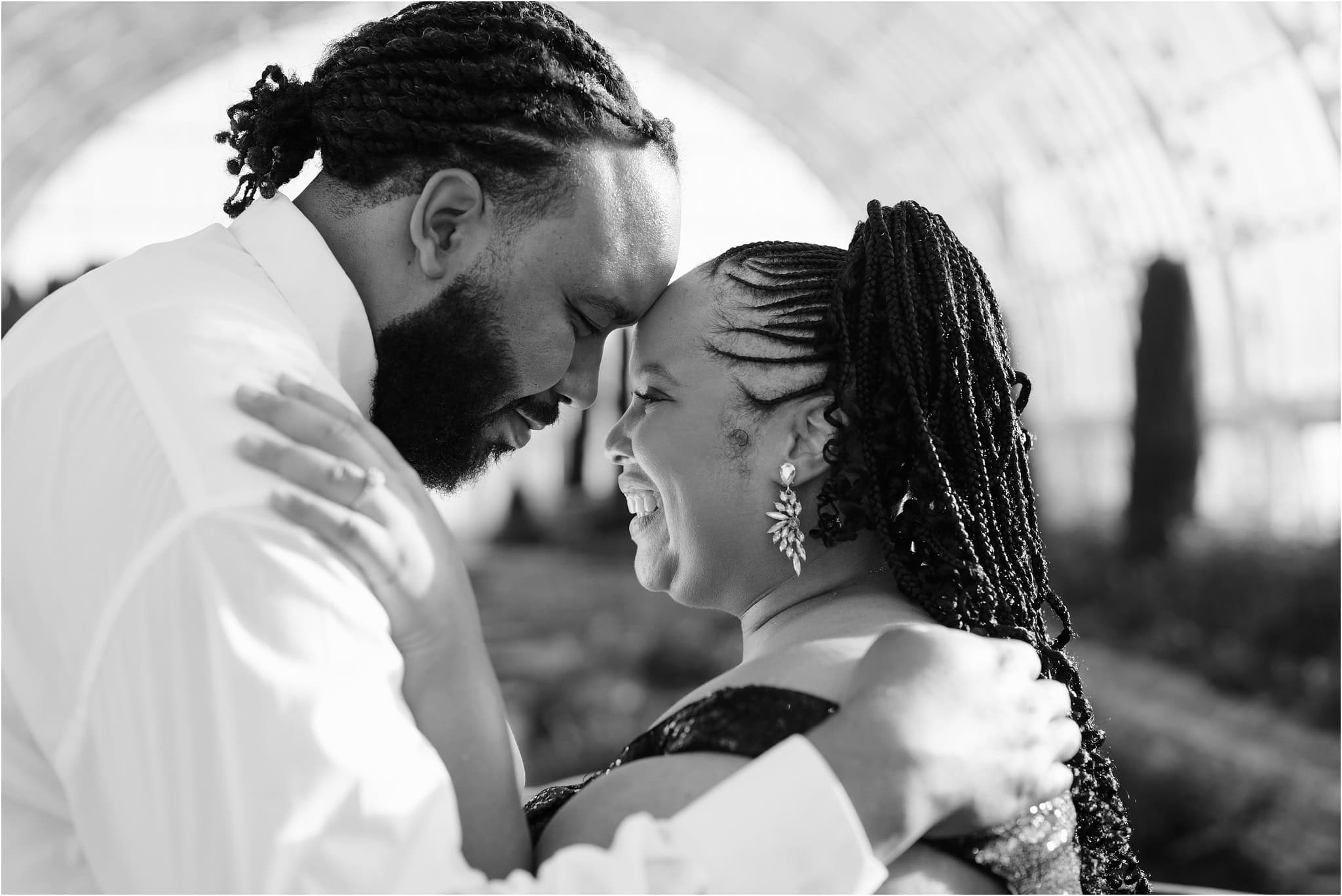 The natural beauty of the conservatory created such a dreamy backdrop, with the soft light filtering through the greenhouse windows and highlighting their amazing smiles.