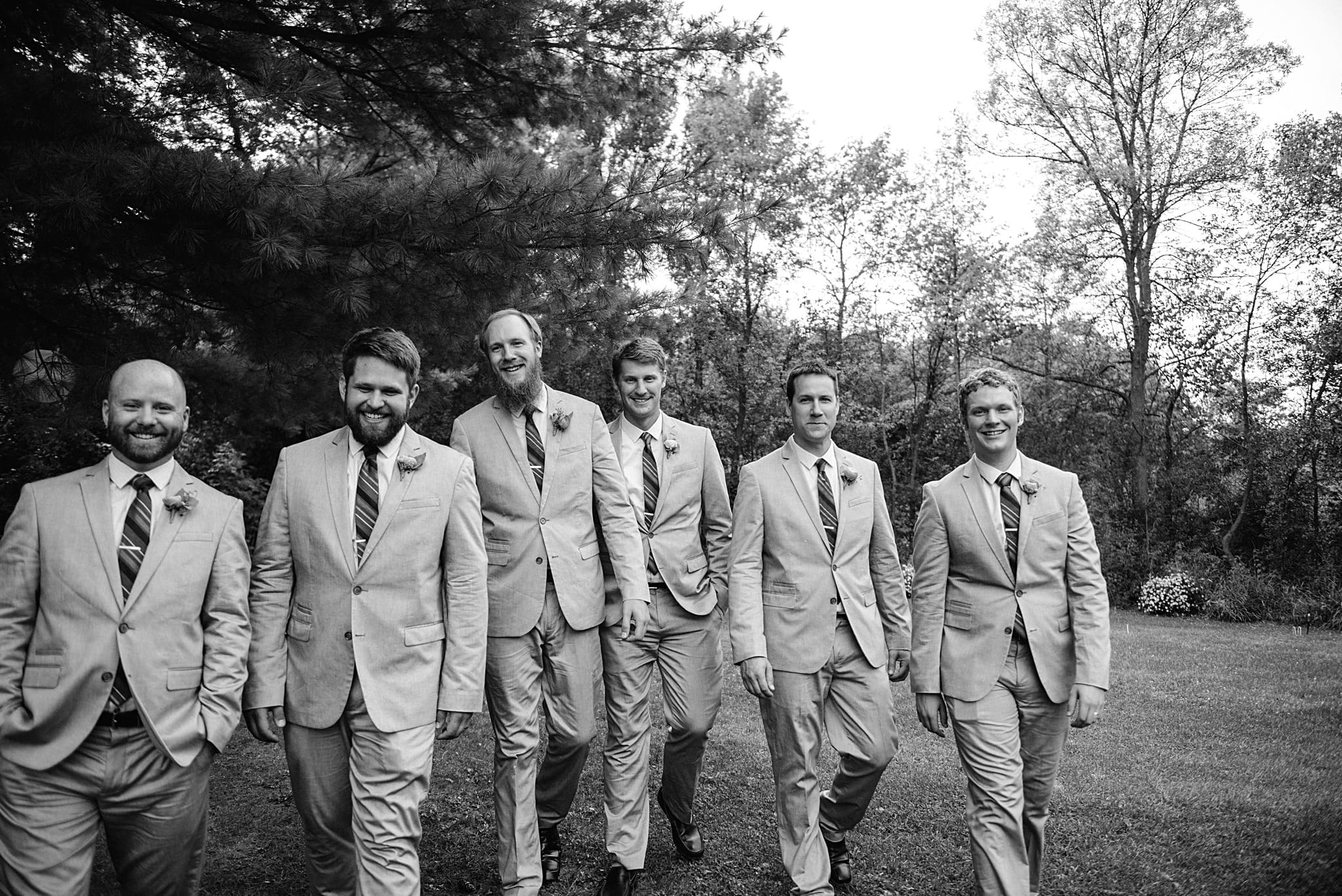 After everyone was dressed and ready to go, we traveled to Minnetonka Orchards, where the wedding and reception took place. I stole Lacy away for some quick portraits before we met Greg at the ceremony sight so he could get his first look at his beautiful bride. The look of absolute joy on his face when he saw her could bring a tear to any eye! We spent some time taking photos in the orchard before meeting up with the rest of the wedding party for some “too cool” group shots.