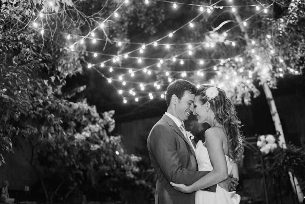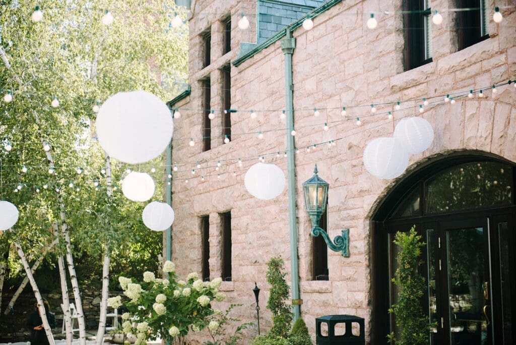 It’s especially magical in fall and winter when the fireplaces glow and the space feels warm and cozy — but spring and summer weddings shine too with the outdoor garden areas.