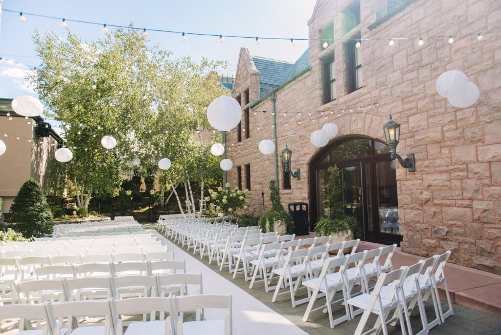 The Van Dusen Mansion Ceremony Space is in the courtyard and is an absolute dream!