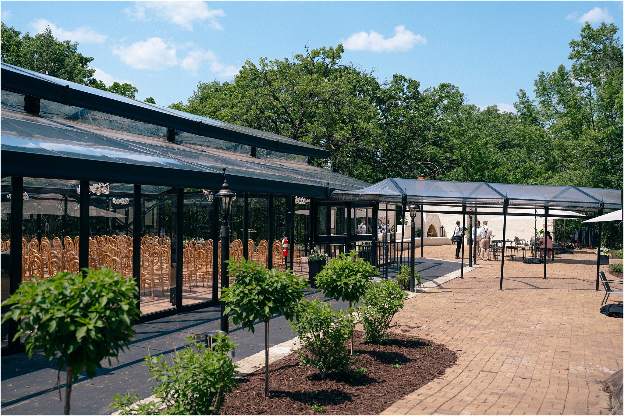 There are two glass structures, which allow the event flow to start at the ceremony Atrium, followed by Cocktail Hour with guests sprinkling outside and coming into the Dining Atrium to celebrate the Dinner and reception. You can then use the Ceremony atrium again for the Dance and party!